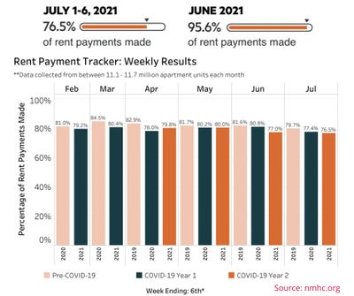 During the height of the pandemic for example apartment landlords continued to collect around 93 to 96 percent of rent payments each month according to the National. Some 876 percent of apartment households made full or partial payments by July 13 according to the National Multifamily Housing Councilan uptick from the 774 percent of. The NMHC Rent Tracker is Powered by.
